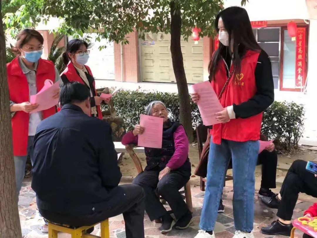 乌龙巷社区新时代文明实践站组织下沉党员干部及社区工作人员在辖区、临街商铺发放“爱的报告”活动倡议书。