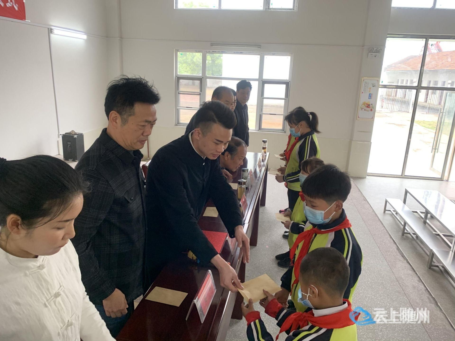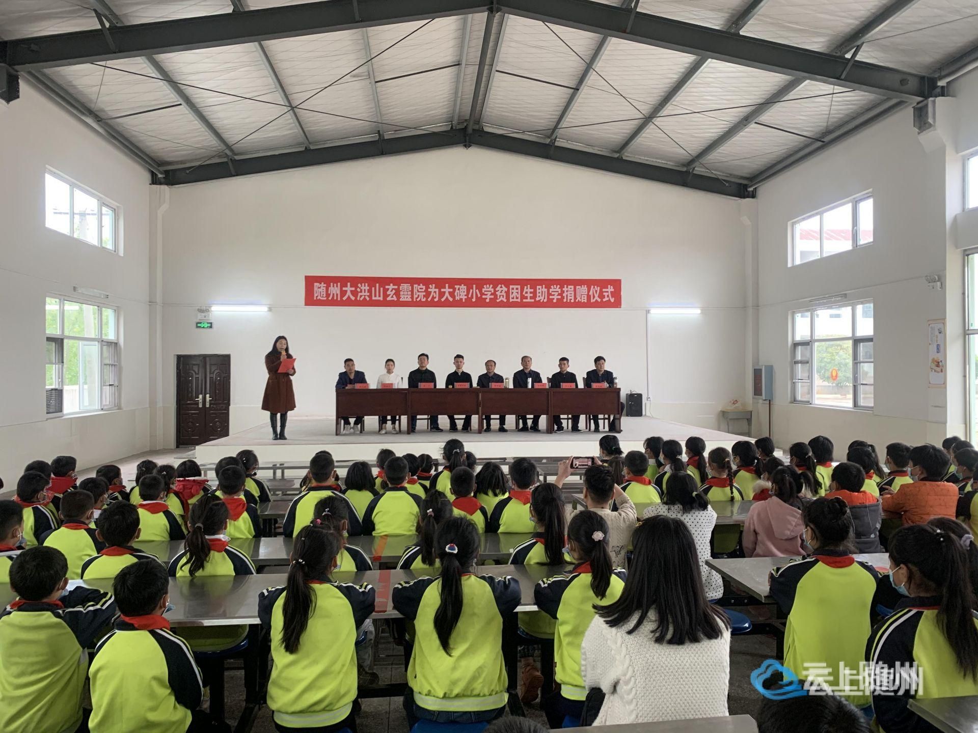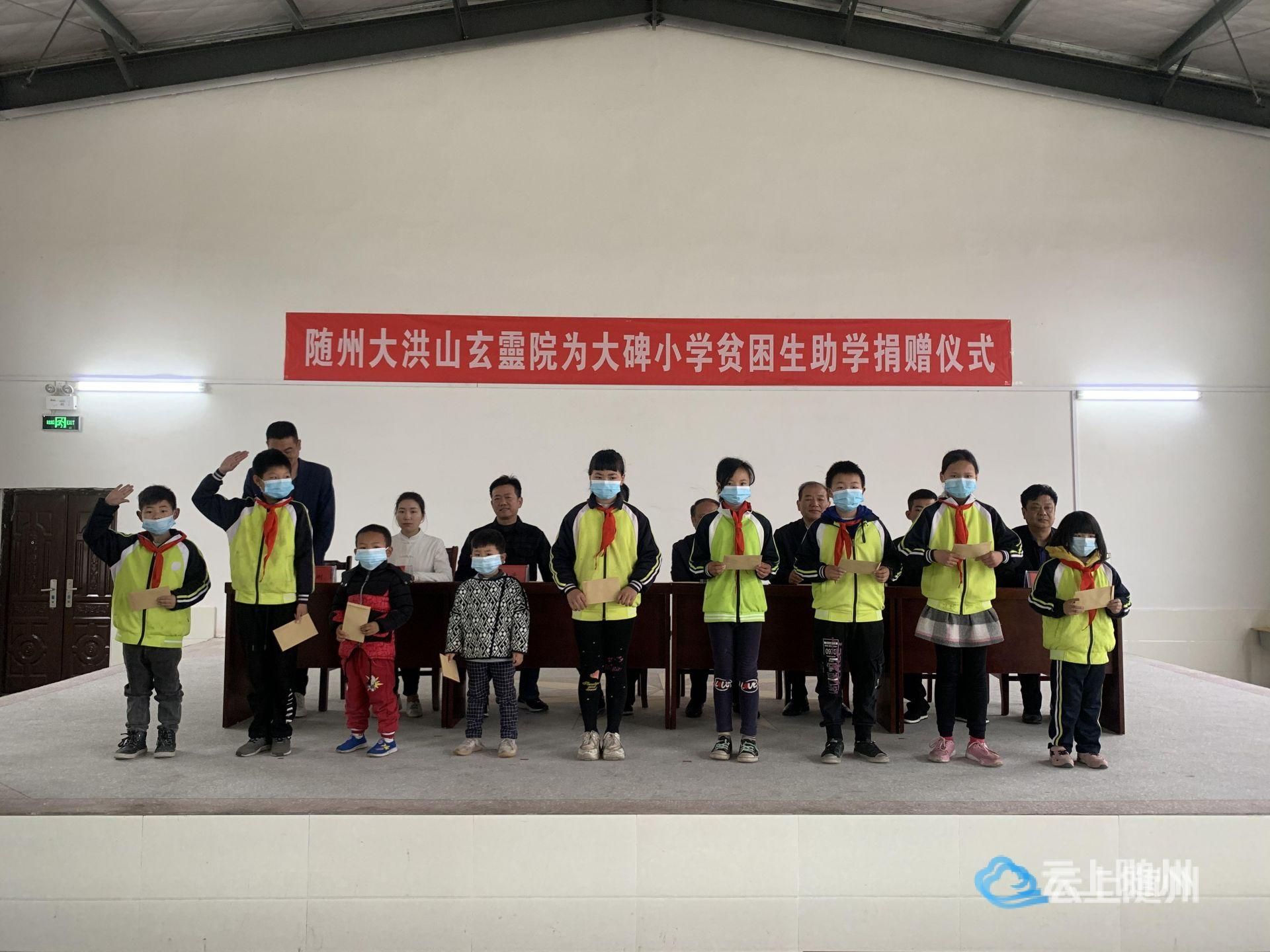4月20日上午,随州大洪山玄靈院“关注教育”助学捐赠仪式在随县澴潭大碑小学举行。随县政协副主席徐开宏、随州大洪山玄靈院住持彭曌阿龙道长等出席捐赠仪式,并现场向20名受助学生发放助学资金。随县政协、澴潭镇政府相关负责人及澴潭大碑小学的全体师生参加了捐赠仪式。