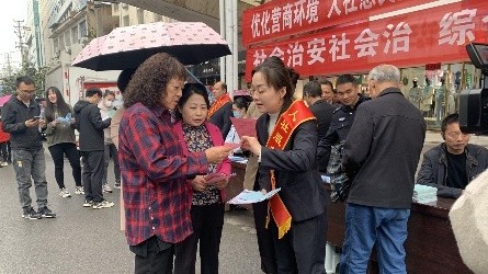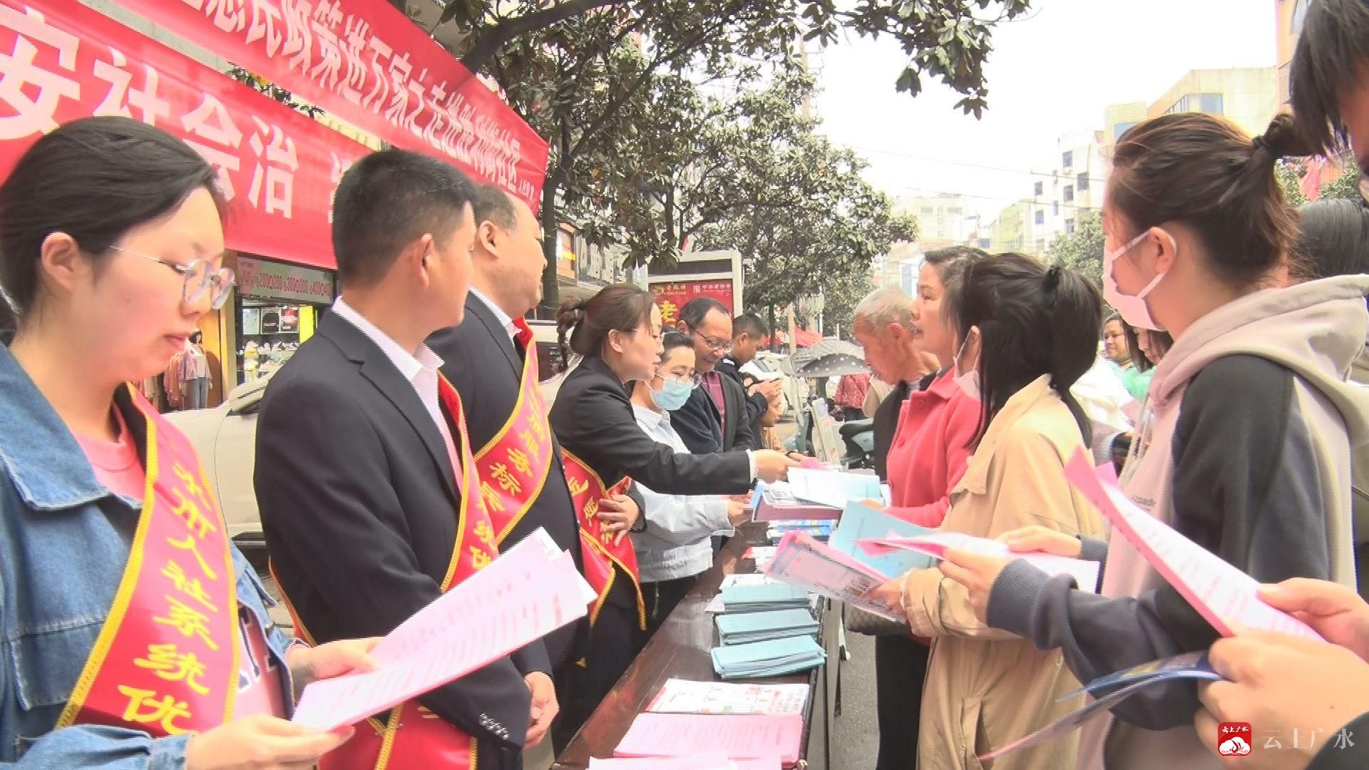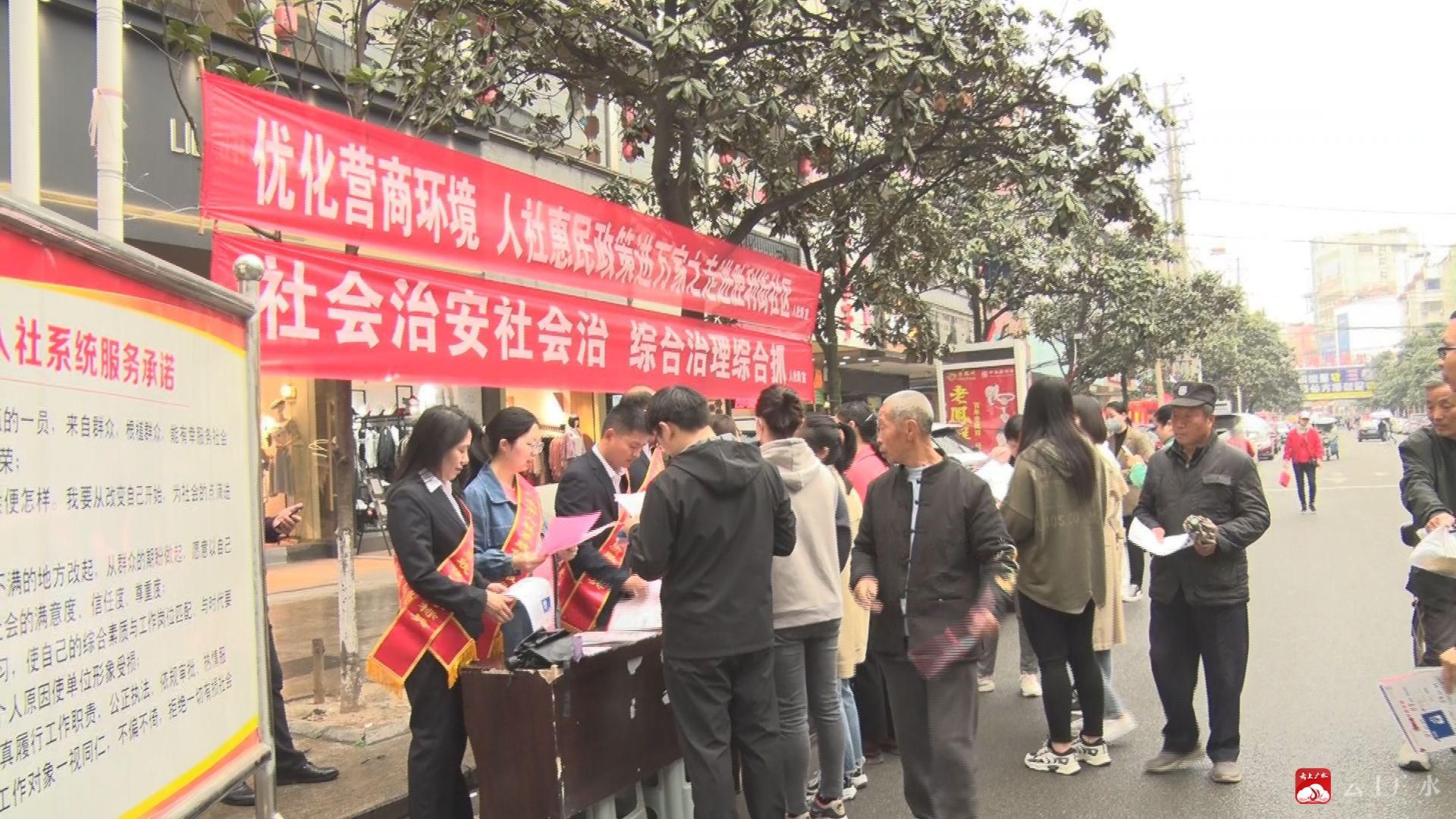 4月20日上午,广水市人社局联合应山街道办事处胜利街社区开展以“爱我广水,共创平安”为主题的平安建设暨人社惠民政策进万家宣传活动。