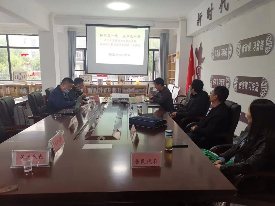 4月21日,双龙寺社区邀请市住建局、市政协委员、区人大代表、中建三局工作人员和社区居民代表对双龙寺社区老旧小区、背街小巷改造项目进行面对面意见征询、协调和协商。(冷红娟)