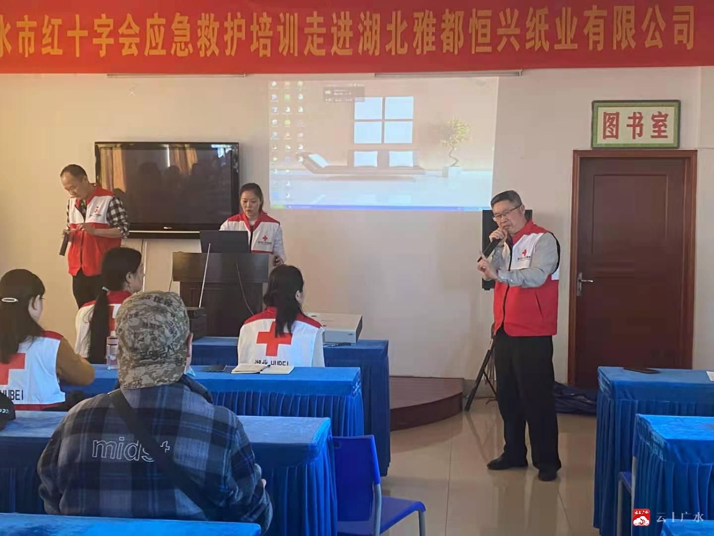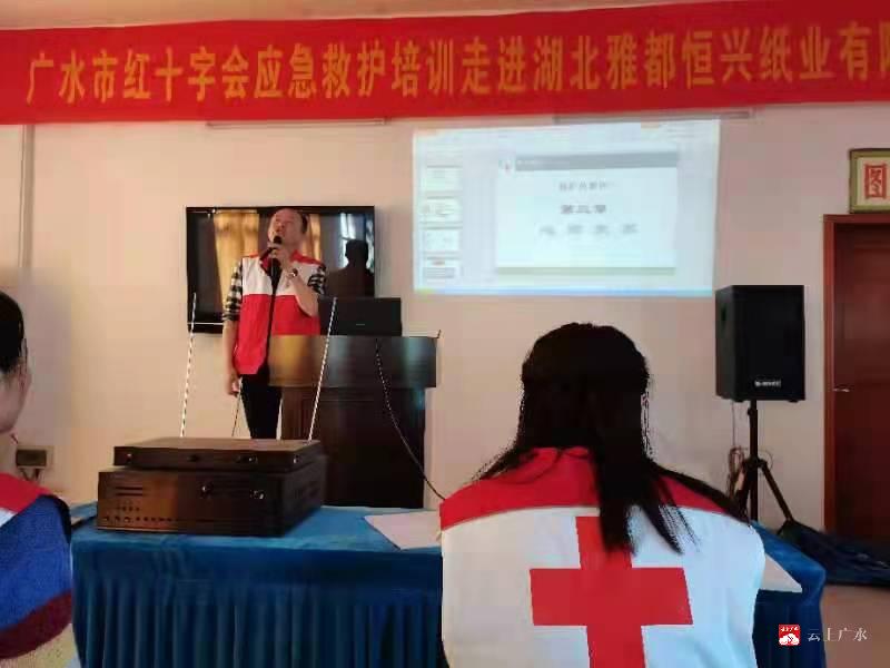 4月22日,广水市红十字会应急救护培训走进湖北雅都恒兴纸业有限公司,对企业50名员工进行了应急救护知识培训,让更多的人认识和掌握现场救护知识。
