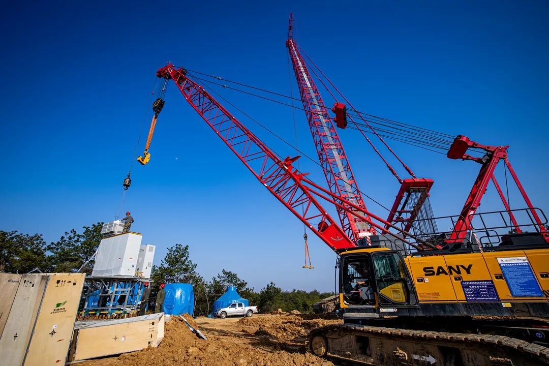 500吨吊机正在吊装发电机组