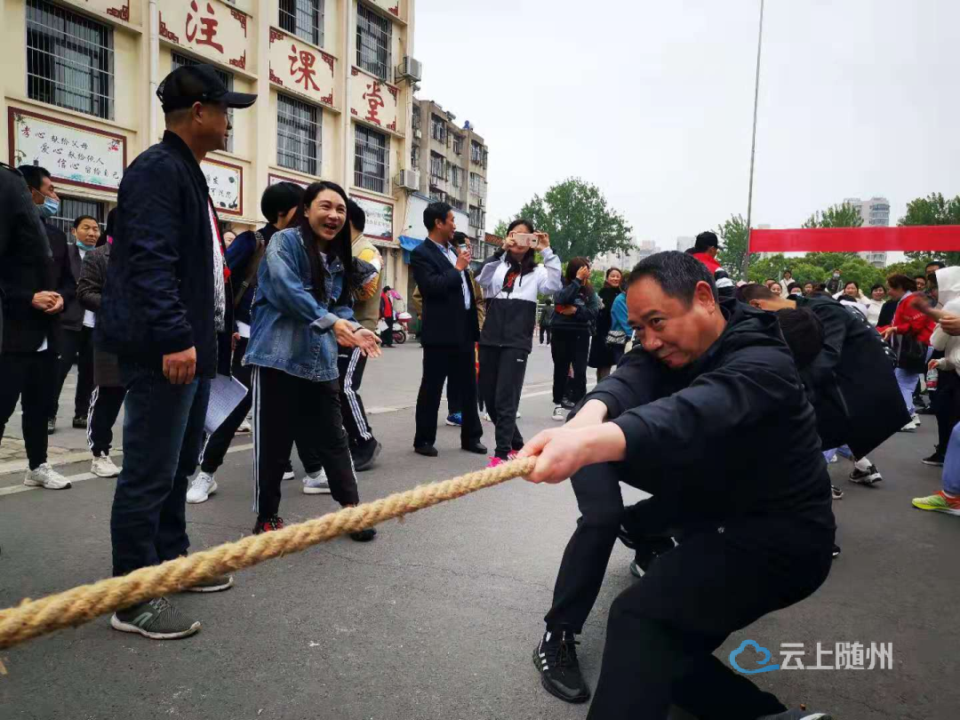 “加油!加油!”拔河现场,参赛队伍的运动员们拧成一股绳,铆足力气奋力拼搏,操场上霎时间人声鼎沸,加油声、助威声一浪高过一浪,连绵不绝。虽然天空下着小雨,运动场内依旧气氛热烈,高潮一个接着一个,一个个冠军接连诞生,运动场周边的“加油”呐喊声此起彼伏。