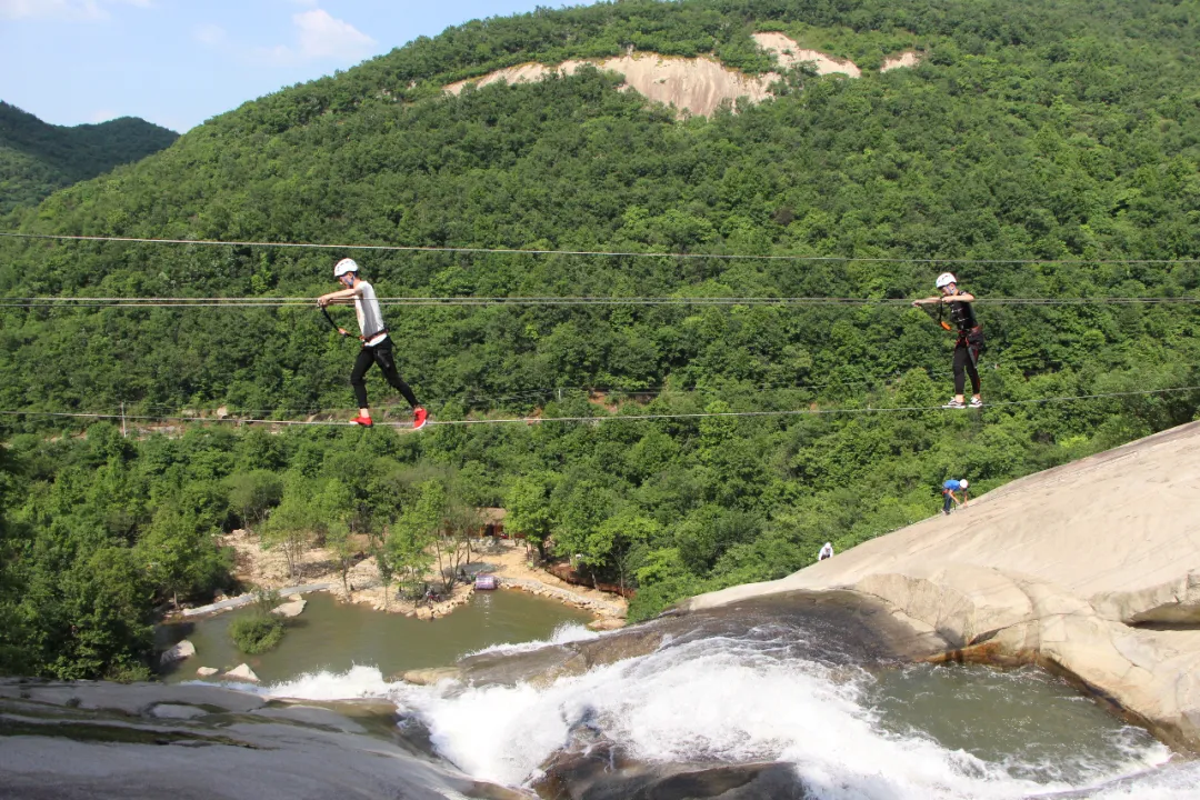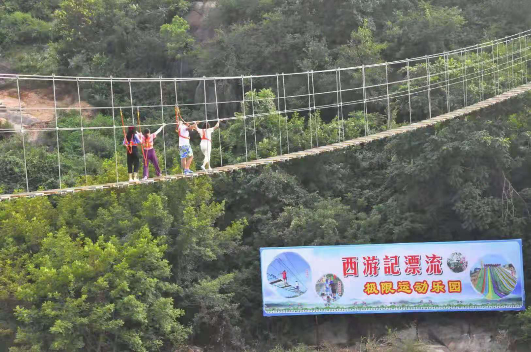 这是鄂豫皖首家极限综合运动乐园,与西游记漂流景区融为一体。建设玻璃栈桥、彩虹滑道、极限滑草、丛林穿越、步步惊心、悬崖秋千、射击、卡丁车、超级弹弓、飞天弹射、水中游船等10多个极限运动项目,即使是在漂流未开漂的季节,仍然是孩子体验各种游乐项目的乐园。