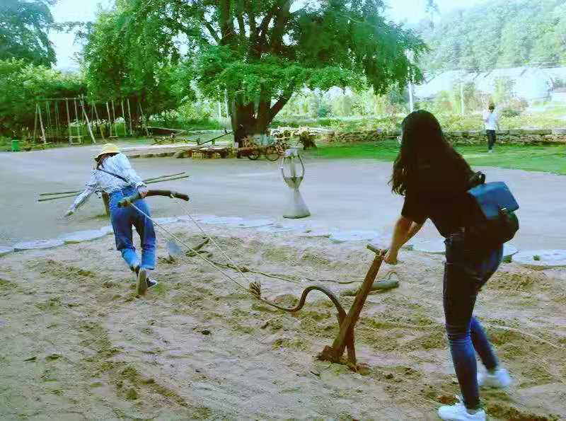 农耕。这里还有一块试耕田,身体力行亲身体验耕田,犁田、耙田,收获“一分耕耘 一分收获”的乐趣。玩起滚铁环这些简单的游戏,重拾那些在田野间追逐、欢笑的简单快乐。