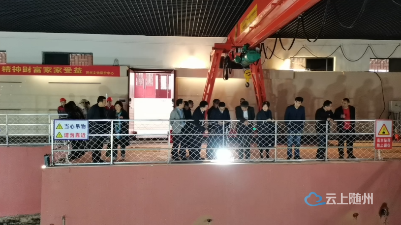 文保专家一行首先来到了曾侯乙墓椁室遗址现场和椁木保护修复中心,查看了曾侯乙墓椁木保存的现状,对目前椁木存在的问题以及如何修缮进行了探讨。