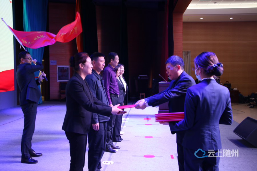 2020年全市各类劳动和技能竞赛中产生的先进个人和先进班组代表:曾云、曹金涛、杜小成、徐博、河北建设集团股份有限公司随州市平原岗棚改安置房建设项目部、中国邮政集团有限公司湖北省曾都区分公司解放路支局、孔晓、彭依媛、黄爽、万红宝上台领奖。