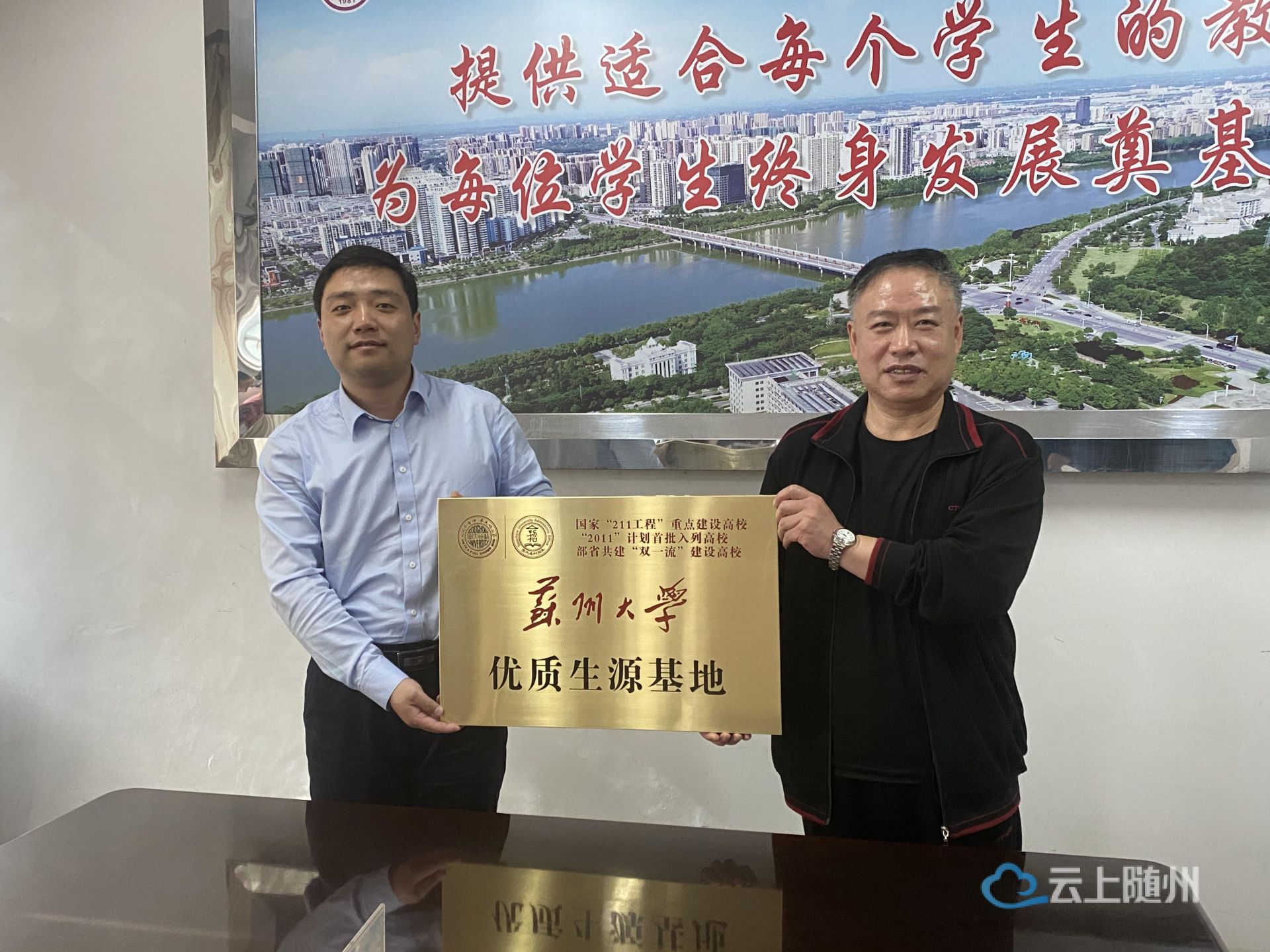 4月29日上午,苏州大学在随州一中、随州二中进行“苏州大学优质生源基地”授牌。苏州大学把随州一中、随州二中定为“优质生源基地”, 标志着我市办学质量又上了一个台阶。