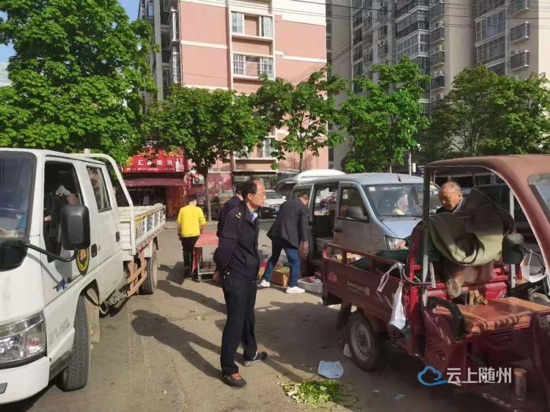 5月1日,西城街道组织执法人员对辖区内水西门菜场、草店子菜场、顺德门菜场等摊贩聚集地周边集中整治,引导流动摊贩进入市场、服从管理。