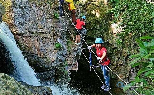 峡谷中、瀑布下,不仅有秀丽的山水风光让游客流连忘还,密林中的运动公园里不时传来游客们的呼喊和尖叫。很多来自都市里的家长和孩子都是第一次接触大自然里的探险运动,在家长的鼓励中,很多孩子套上保护索,当起了丛林飞侠,在惊险刺激中勇敢地体验了一把超越自我的快乐。尤其是孩子们,把大洪山里生机勃勃的大自然当成了最好的教科书,大人们在欣赏美景的时候,孩子们却对小小的昆虫、奇异的植物产生了兴趣。