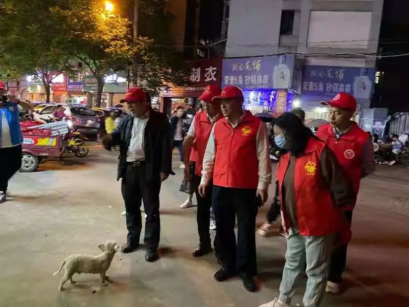 4月30日晚,东城街道文峰塔社区下沉党员干部、社区工作者组成文明风尚志愿服务队,在文峰都市花园小区及周边开展文明养犬劝导志愿服务。