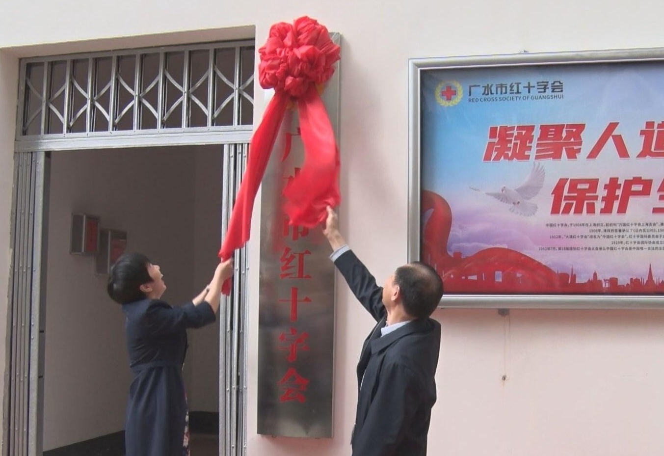 仪式上,席先国、刘秀玲共同为广水市红十字会揭牌。