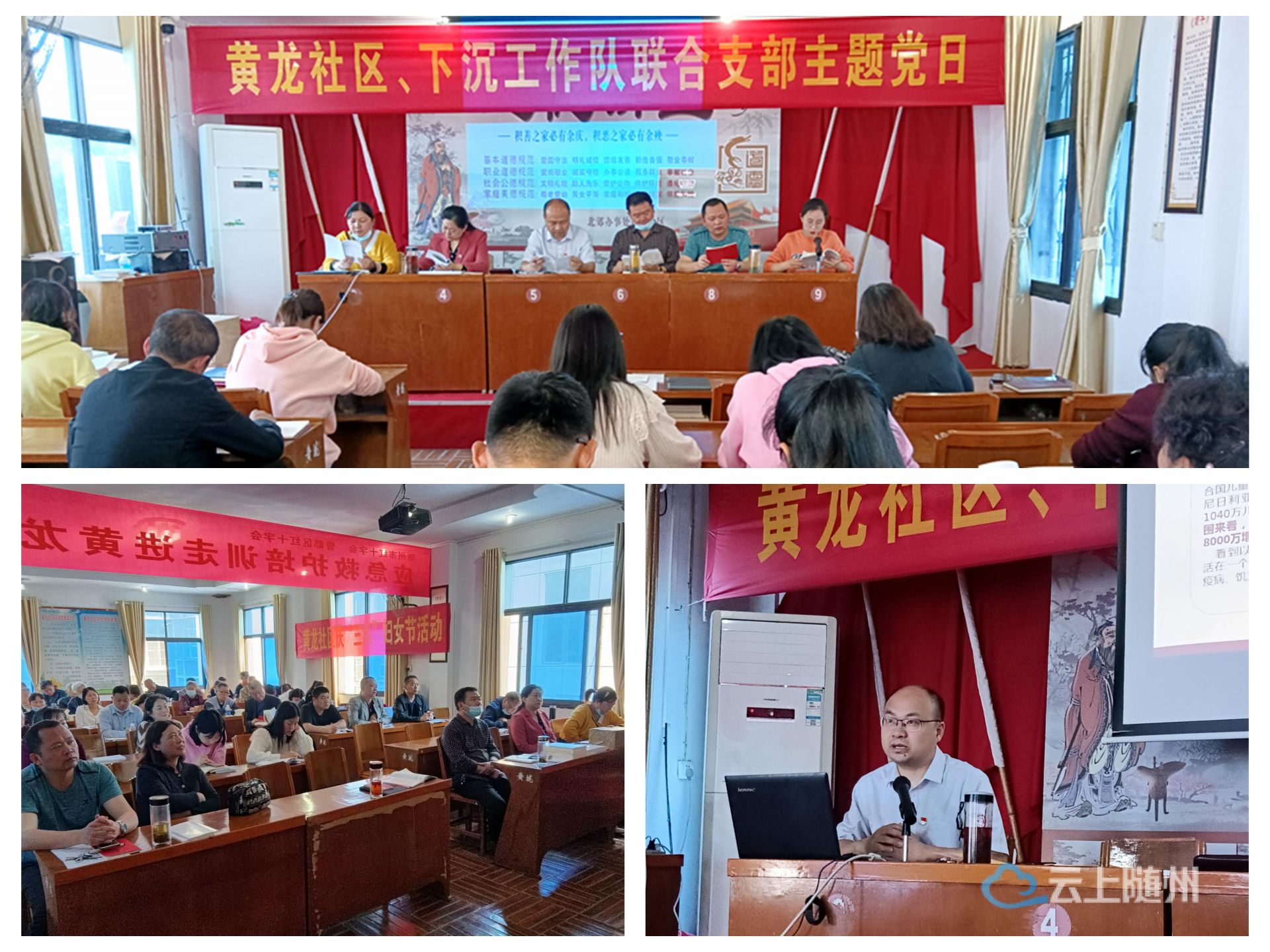 下沉社区单位分管领导及联络员、黄龙社区党委班子成员、支部书记、骨干党员和群众共计60余人参加此次党课学习。