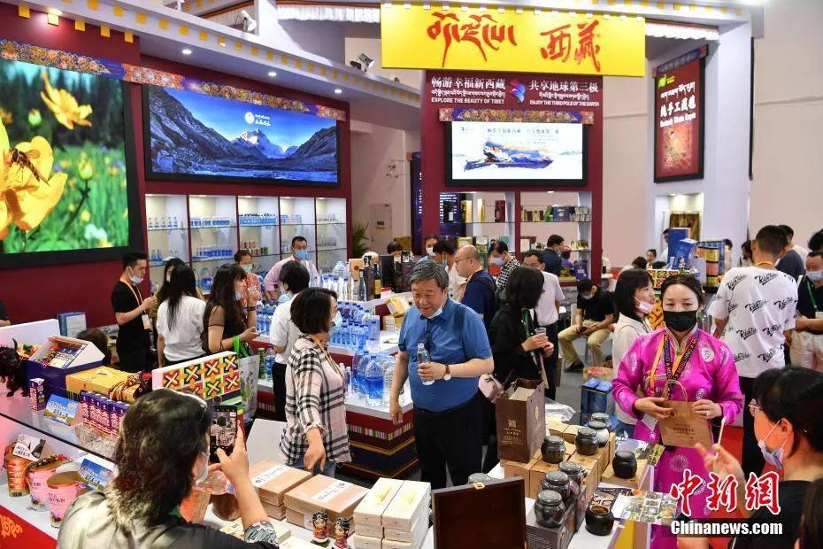 图为众多参观者在西藏馆参观购物。中新社记者 崔楠 摄