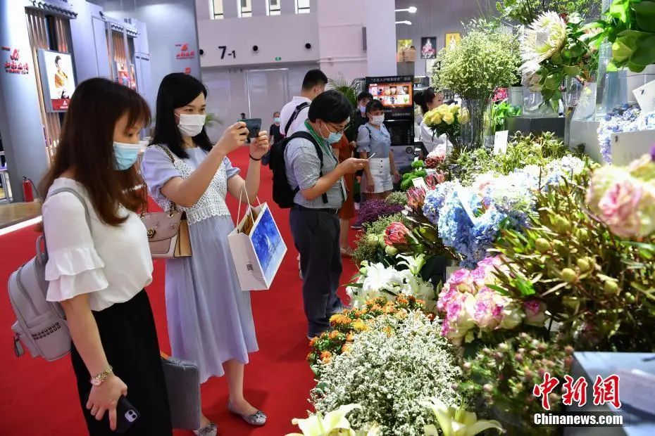图为云南馆展出的各种鲜花吸引参观者。中新社记者 崔楠 摄