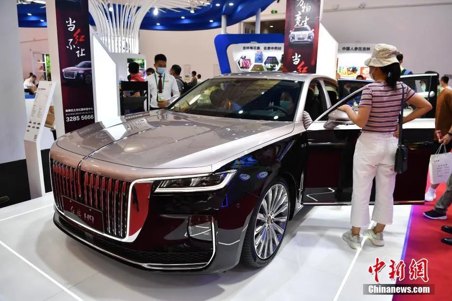 图为吉林馆中展示的红旗轿车受到参观者关注。中新社记者 崔楠 摄