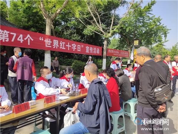 5月8日是第74个世界红十字日。当天上午,我市红十字会组织红十字精神传播、造血干细胞捐献、无偿献血、人体器官捐献、应急救护、健康关怀6支志愿服务队的60余名志愿者,在城区神农公园人流密集处开展街头集中宣传,向市民群众普及红十字运动基本知识、红十字会基本职能,以及应急救护、无偿献血、造血干细胞捐献、人体器官捐献等知识,并现场开展义诊。