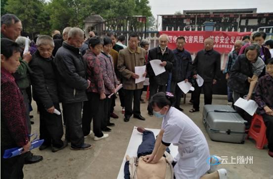 活动现场悬挂横幅,设立义诊咨询台,为居民进行免费健康体检,发放宣传资料等。医务人员利用心肺复苏模拟人边做演示边向参与活动的居民强调急救技术的注意事项以及操作要点,现场部分居民积极参与模拟演练,初步掌握了心肺复苏的技能。同时医务人员还向居民发放了防灾减灾宣传资料,并对日常生活中常见的交通事故、猝死、烧烫伤、脑溢血、晕厥、中暑、溺水后该如何抢救、硫化氢中毒该如何预防等生活中意外伤害的急救方法和如何预防,用通俗易懂的语言做了深入浅出的讲解。