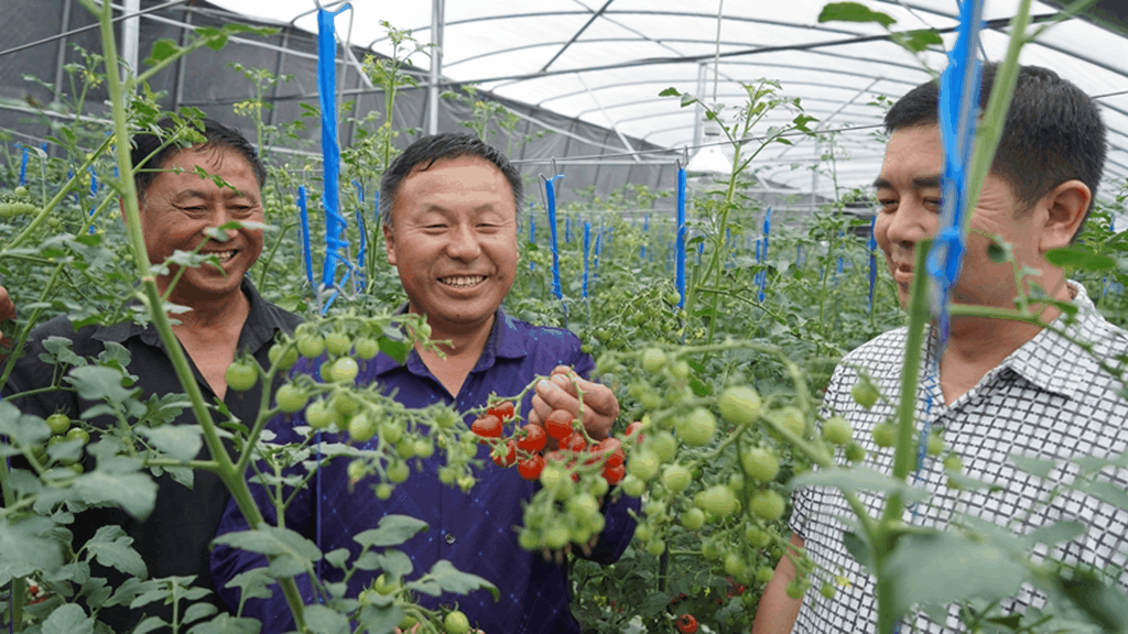 智慧农业既激活了村集体经济的发展新动能,也给农户带来了实实在在的收益。现年70岁的王义兰就住在基地旁边,聊起家门口的新产业,正在大棚里帮忙摘果的她笑着说道:“在这里工作晒不到太阳、淋不到雨,也不累,平时帮忙开风扇、关电源,也做点儿剪枝的手上活儿,收入还行。”