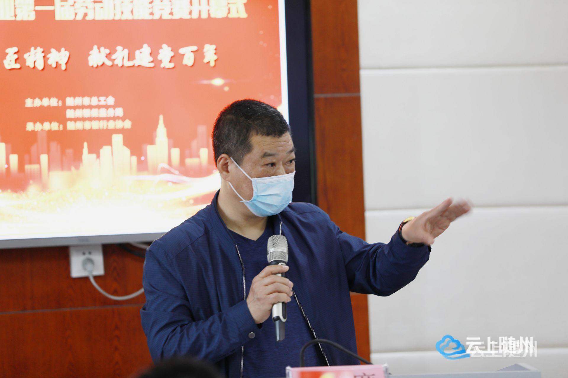 市总工会二级调研员郭黎明向竞赛中所有取得优异成绩的团体和个人表示祝贺,并表示,希望获奖的单位和个人珍惜荣誉,谦虚谨慎、戒骄戒躁,牢固树立“以人民为中心”、“以人为本”服务理念,发扬先锋模范作用,以更加饱满的热情、更加昂扬的斗志,为客户提供更优、更快、更便捷的金融服务,增强人民群众金融获得感、幸福感、安全感。全市银行业广大员工,要以先进为榜样,立足本职工作,认真学习,掀起练技术、强素质新高潮,为建设品质随州作出新的、更大的贡献,以优异成绩向建党百年献礼!