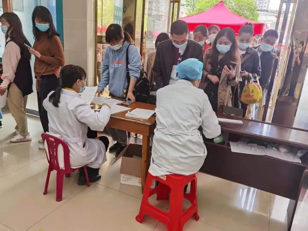 5月16日,在南郊街道柳树淌卫生服务中心疫苗接种点,前来接种新冠疫苗的居民早早排起长队,接种现场高效、有序。