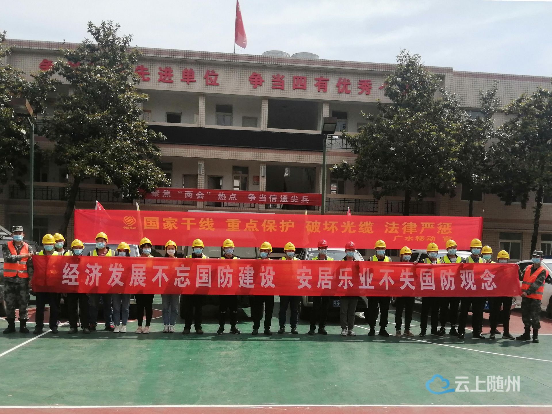 在广水,随州移动联合驻广水某部队通信连开展护线宣传。广水分公司提前制定预案,规划宣传活动路线、车辆、人员、宣传物料等。活动当天,在市区繁华路段设置咨询台和宣传展板,与来往居民面对面交流讲解,科普相关政策法规;制作宣传横幅和宣传单200余张,发放给沿途的施工人员,有针对性地介绍破坏光缆对国家、对家庭、对日常生活的危害和影响,发动群众主动依法护线。