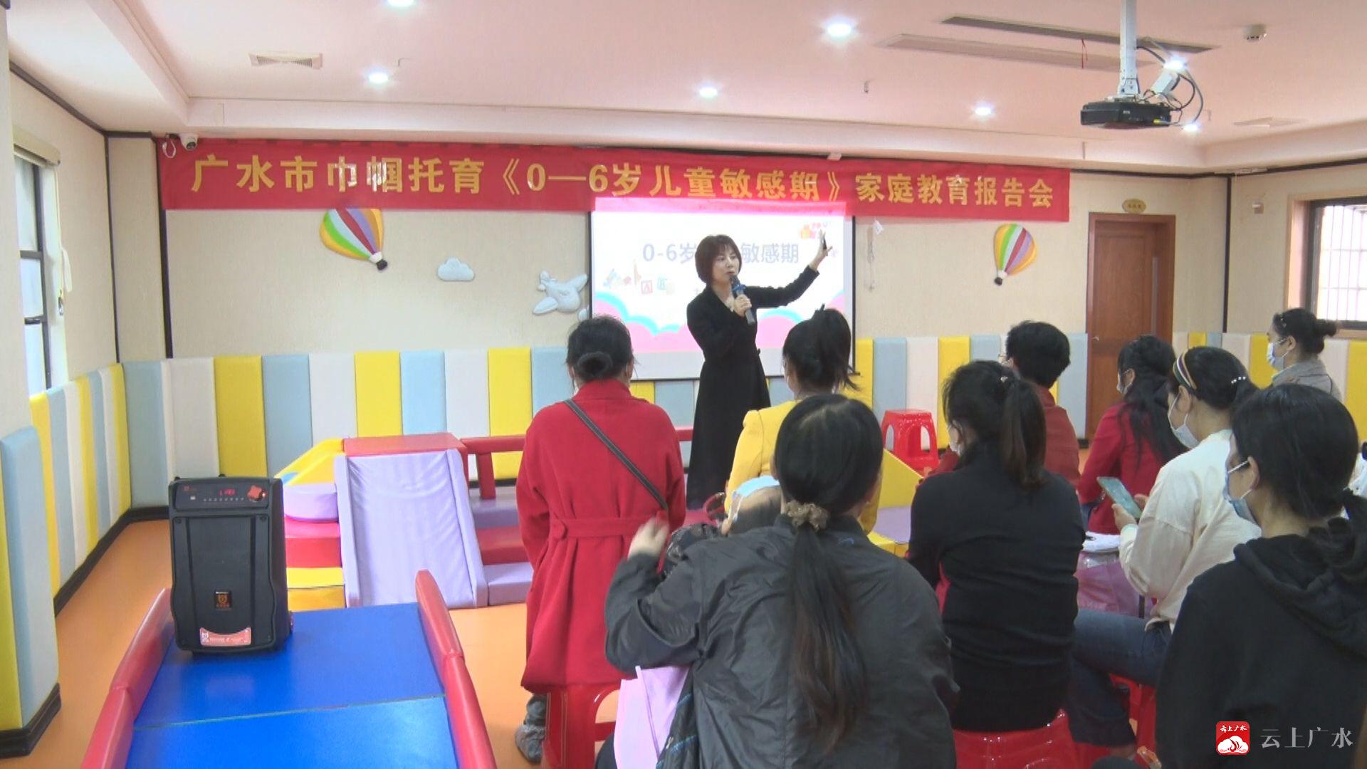 5月16日,广水市巾帼托育早教中心举行家庭教育公益报告会,向社区幼儿父母讲解如何教育培养处于0至6岁敏感期的儿童,提高孩子专注力、学习力。