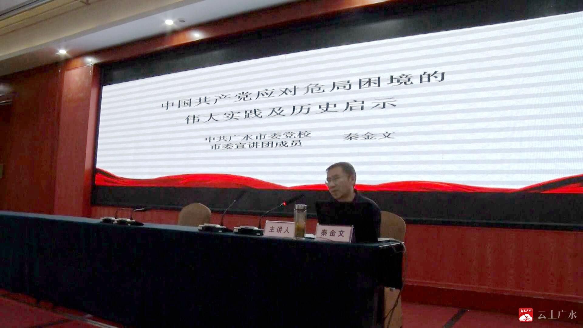 市委党校讲师、市委宣讲团成员秦金文受邀为大家做了党史学习教育专题宣讲,他以《中国共产党应对危局困境的伟大实践及历史启示》为题,以党史为脉络,深入解读了中国共产党应对危局和困境的成功密码,深刻阐述了中国共产党艰苦卓绝、光荣辉煌的奋斗历程,让与会人员对党的光荣传统、宝贵经验和伟大成就有了更加全面深刻的认识。