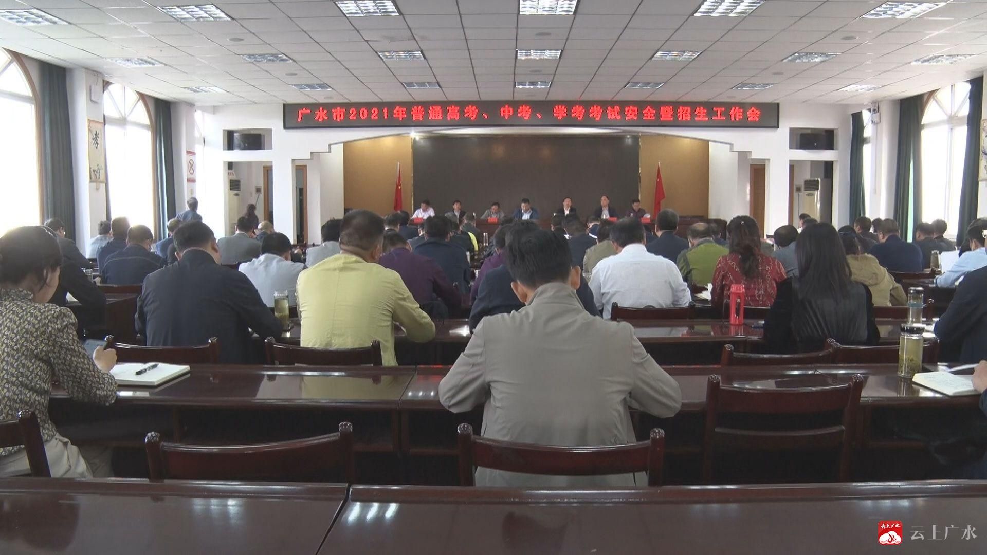 5月21日,广水市召开2021年普通高考、中考、学考考试安全暨招生工作会。会议强调,今年是新高考的第一年,各涉考点和考务人员要进一步提高认识,切实增强做好“三考”工作的责任感和使命感,以“平安三考”的优异成绩迎接中国共产党成立100周年!