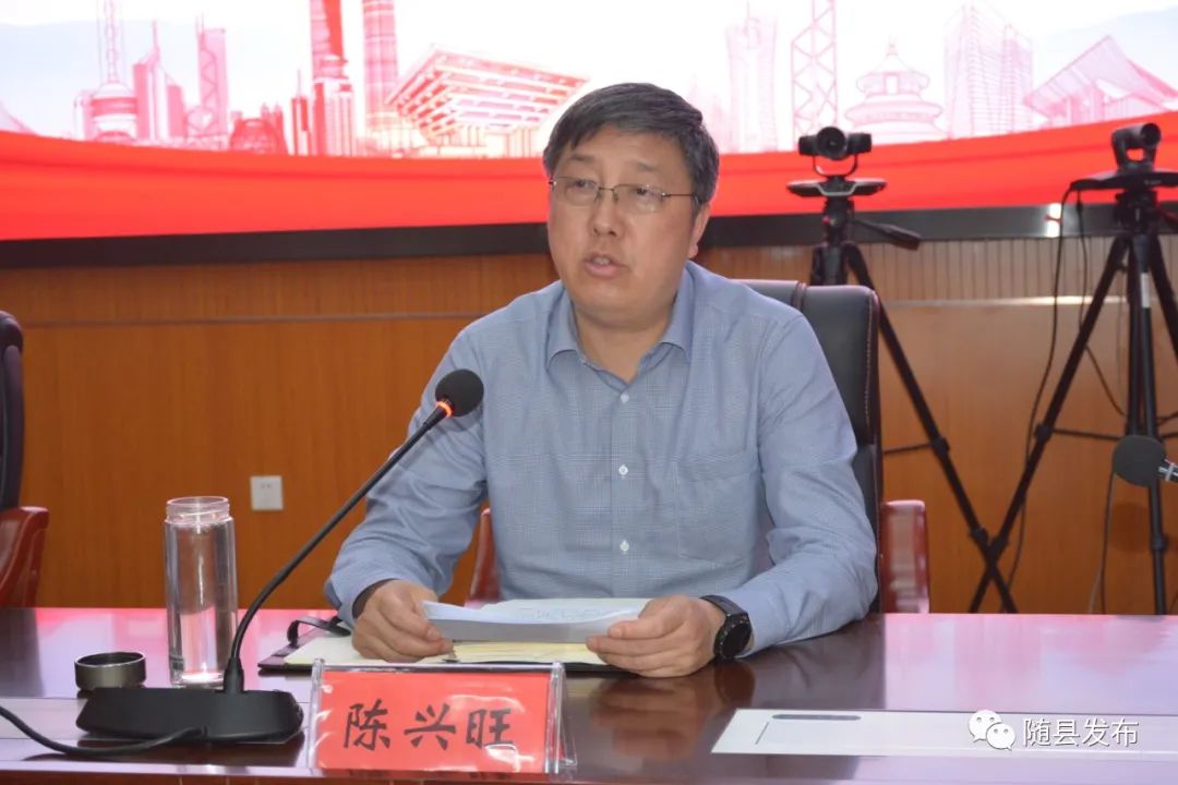 随县县委书记陈兴旺讲话,县委常委、组织部长付敏,县委常委、政法委书记黄军均参加会议。
