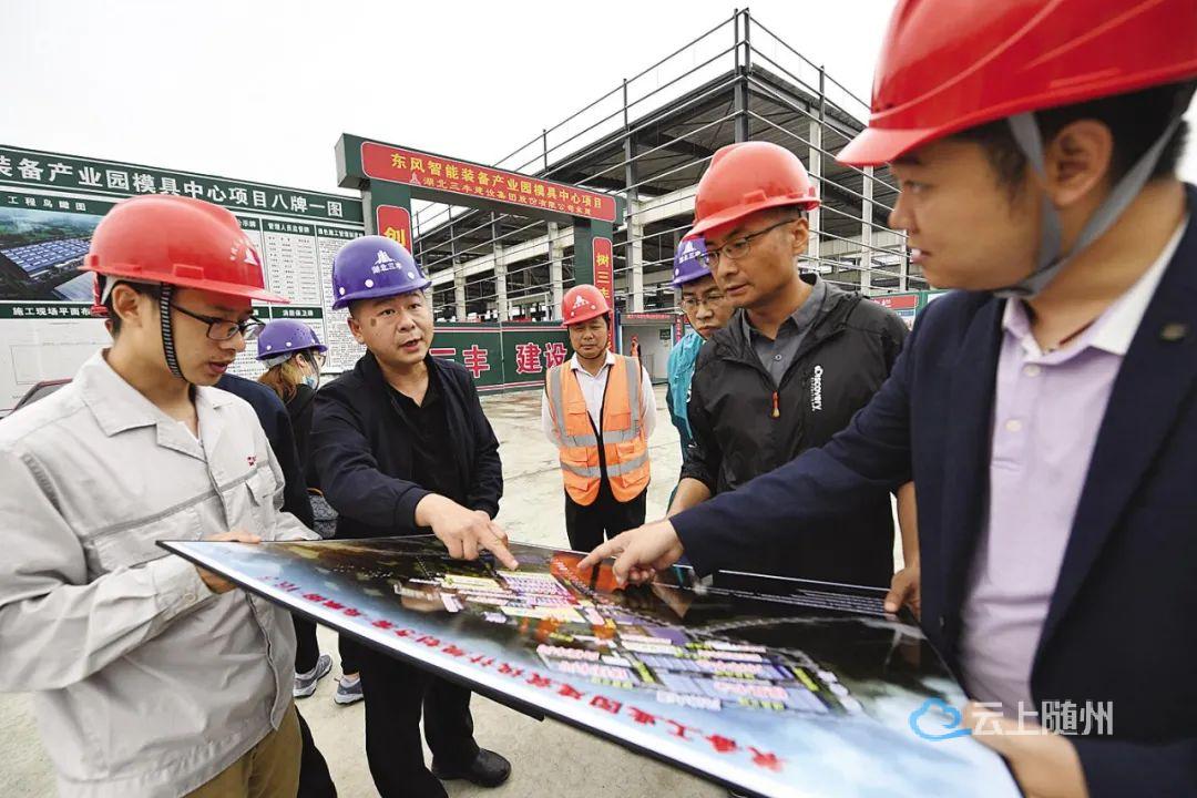 5月14日,十堰市张湾区企业服务中心请市住建局等职能部门专家,到东风智能装备产业园项目一线,帮助解决企业难题。(湖北日报全媒记者 田悦 通讯员 徐春晓 杨光颜 摄)
