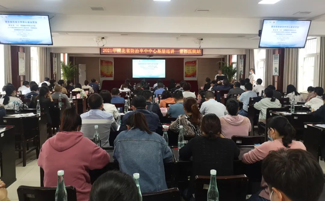 为贯彻落实省、市“323”健康攻坚相关工作部署,推进曾都区影响群众健康突出问题攻坚行动,加快卒中中心建设,湖北省脑卒中防治中心、湖北省脑血管病防治学会、曾都区卫生健康局、随州市曾都医院,于5月20日下午在曾都医院临床教室一楼联合举办“323”健康攻坚脑卒中防治行动--2021年湖北省卒中中心建设巡讲(+随州曾都站)暨随州市曾都区卒中中心建设推进会”。出席此次卒中中心建设推进会讲座领导专家有:武汉大学人民医院张兆辉教授、华中科技大学附属协和医院曹学兵教授、武汉市第四医院沈伟教授、襄阳市中心医院常丽英教授、天门市人民医院杨小华教授、随州市中心医院陈绍斌院长、湖北省脑血管病防治学会办公室主任李玲、曾都区卫健局党组成员、副局长、曾都医院党委书记、院长黄湘云、曾都区卫健局党组成员、工会主席,计生协专职副会长丁继兵、曾都医院院领导班子成员和区医供体成员单位负责人等人员。