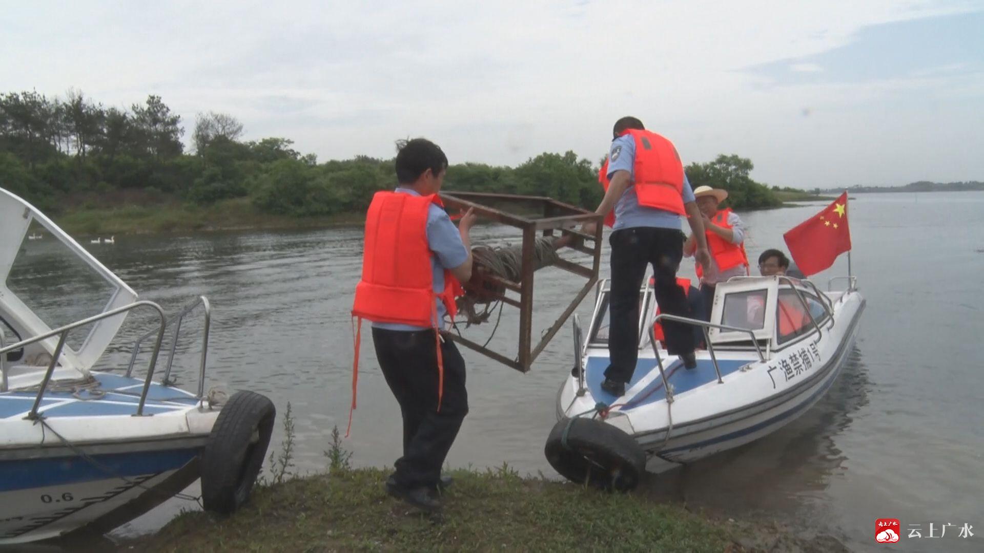 广水市自开展重点水域全面禁捕工作以来,广水市委市政府始终把保护区禁捕工作作为重要的政治任务,坚决做到执法监管到位,确保禁捕水域禁得了,稳得住。广水市农业执法部门不断深化“两法”衔接,全面开展执法监管,以“零容忍”的态度持续开展打击非法捕捞行动。实施全面禁捕以来,出动执法人员410人次,车辆102余台次、船艇132余艘次、无人机12架次,收缴非法渔具86件,查扣船只32艘。广水市查获渔业非法捕捞案件20起,办理渔业行政处罚案件20件,移交1起。同时取缔“三无船舶”(无船籍港、无船名号、无船舶证书的船舶)20余艘,始终对“三无”船舶违法违规行为保持高压态势。