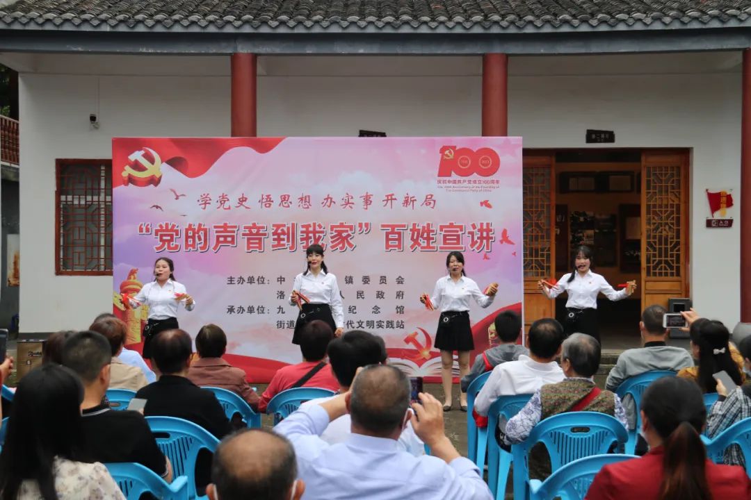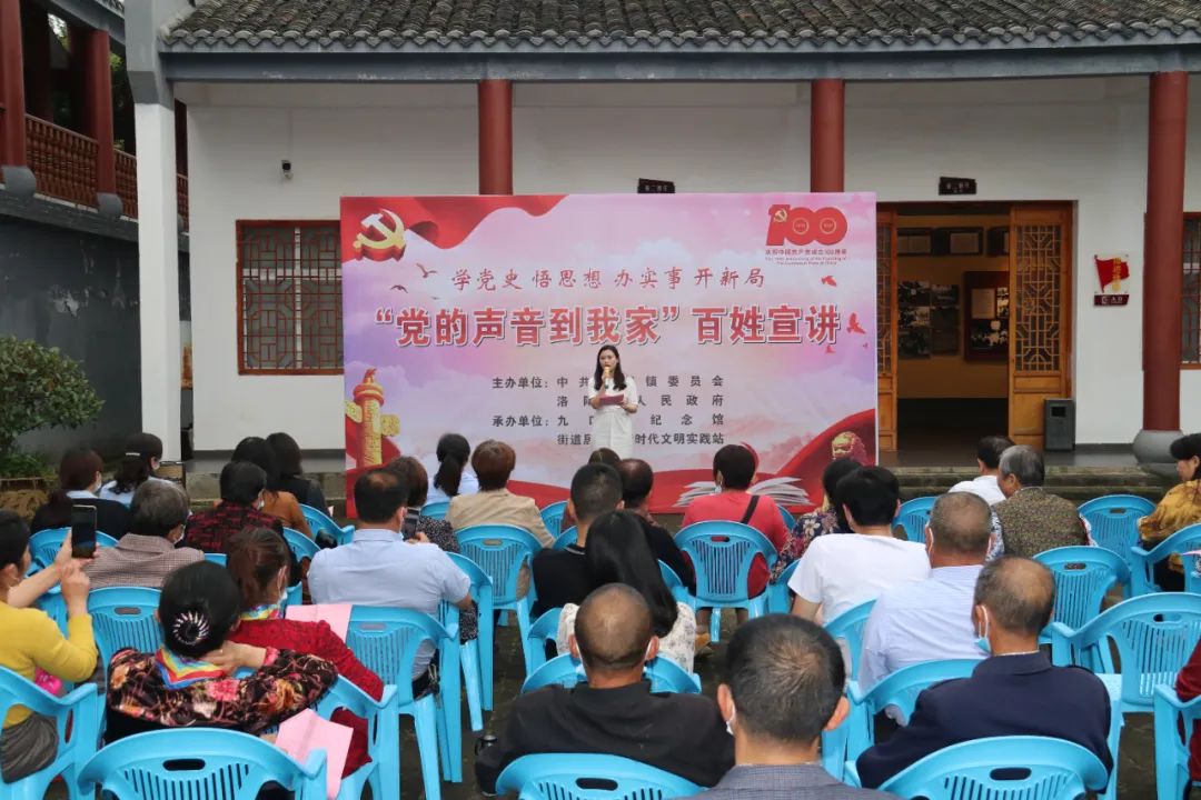 5月25日下午,在洛阳镇九口堰新四军第五师革命旧址纪念馆,一堂“党的声音到我家”百姓宣讲活动正在开讲,洛阳镇党员干部和附近的村民们围坐在一起,听得格外认真。