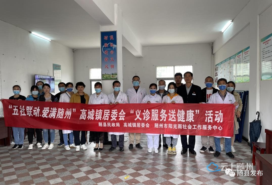 5月26日上午,随县民政局、高城镇民政办、高城镇居委会、随州市阳光雨社会工作服务中心、随州中医医院、爱尔眼科医院联合开展“五社联动·爱满随州”高城镇居委会“义诊服务送健康”活动。