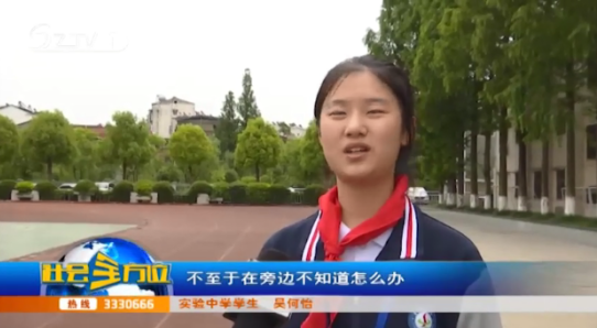 【采访】实验中学 学生 吴何怡:我们都学会了这个急救知识的话。可能我们在社会上看到了一些危急的事情。我们就可以出手相助,不至于在旁边不知道怎么办。