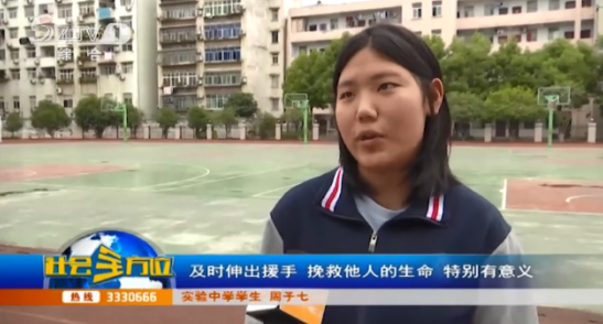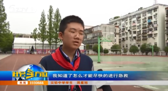 【采访】实验中学 学生 周星旭:通过这次学习,我知道了怎么才能尽快的进行急救。希望以后遇到这种状况,我能够沉着冷静的应对。