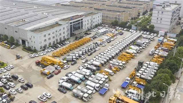 160亩的厂区里,各种专用汽车摆得满满当当,一台卡车上加装云梯的高空作业搬家车十分抢眼。