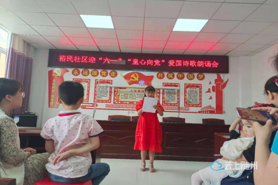 为庆祝“六一”儿童节及中国共产党成立100周年,扎实推进党史学习教育走深走实走心。5月29日上午,裕民社区隆重开展以“童心向党” 为主题的少儿诗歌朗读活动,用诗歌朗诵歌颂党的光辉历史和丰功伟绩,讴歌先进人物的典型事迹,把党史学习教育融入孩子的日常生活之中,让他们能够以歌朗诵歌、演讲等方式学党史、悟思想,听党话、感党恩、跟党走,立志为国做贡献,让红色基因、革命薪火代代传承。同时也展现了对祖国未来的美好祝福,陪伴孩子们提前过了一个开心快乐的节日。