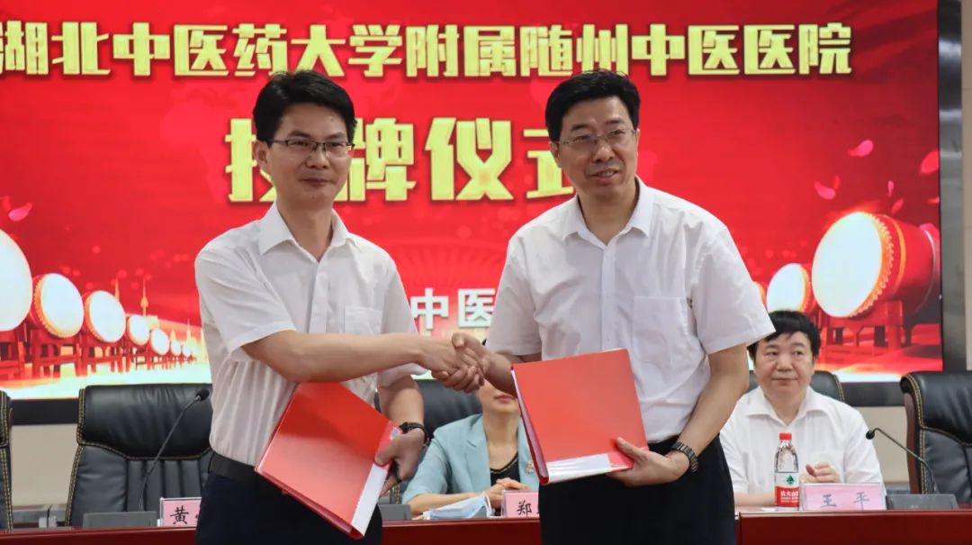湖北中医药大学副校长黄必胜与随州市中医医院院长梁冬波签署了附属医院合作协议、联合培养研究生协议,与随州市人民政府副市长郑晓峰一起现场揭牌。