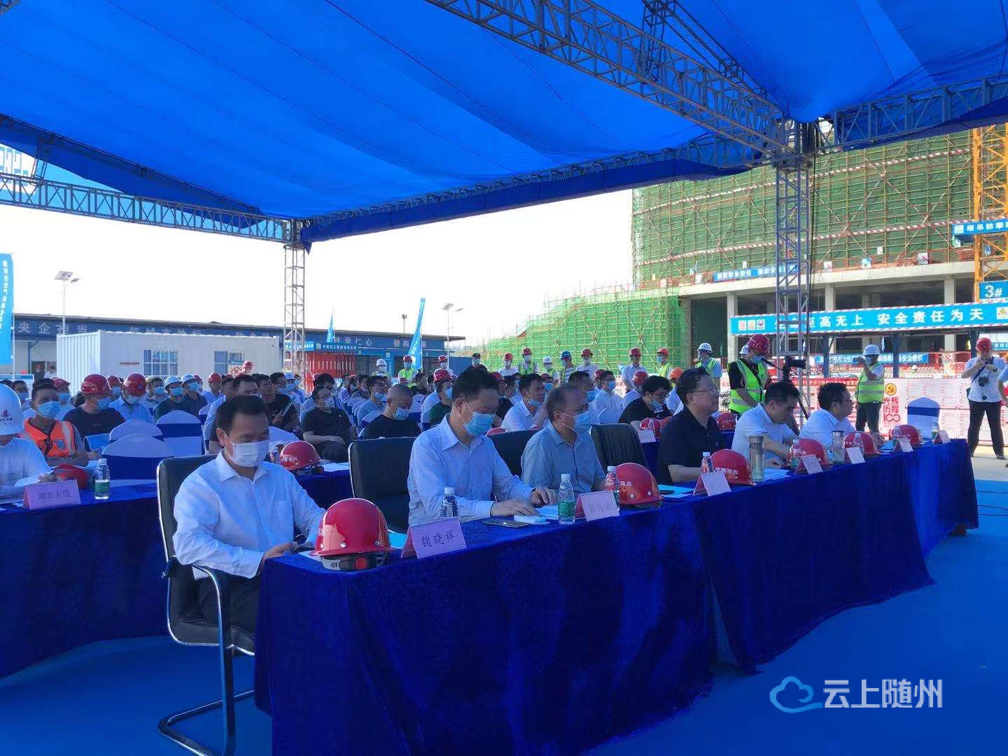 与会人员现场观摩了中建科工集团有限公司随州城市公共活动中心综合体项目建筑工程安全标准化、信息化建设。