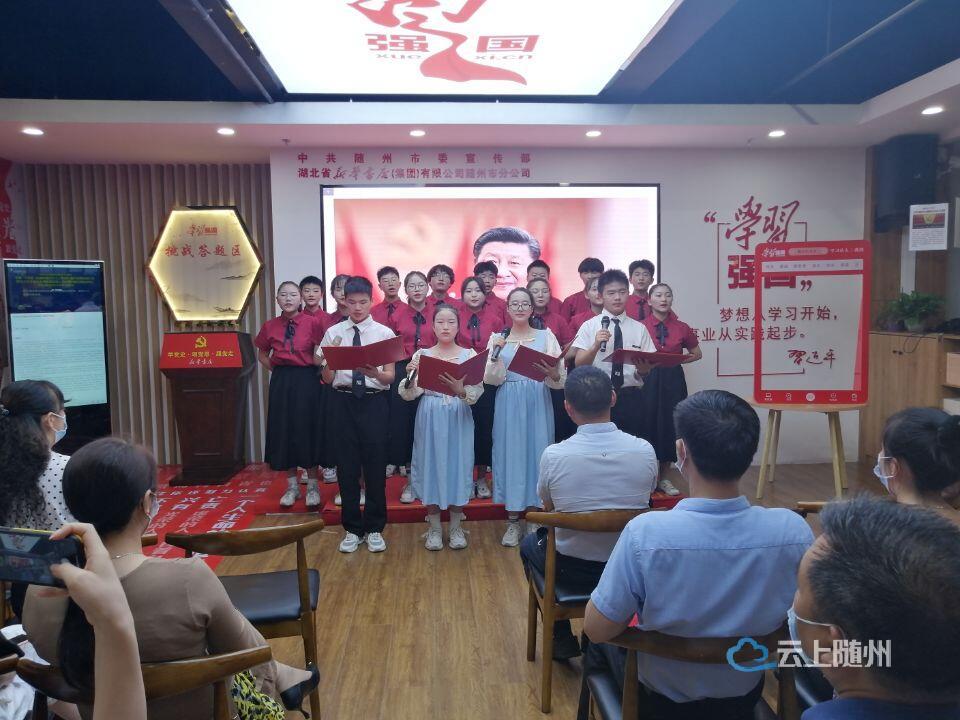 近日,由曾都区委宣传部组织的“学党史、强信念、跟党走”“学习强国”线下体验空间曾都区学习分享会在随州市新华书店成功举办。会上,10名线上学习标兵受表彰,4名获奖代表分享了他们参与“学习强国”平台学习的经历与体会。来自擂鼓墩中心学校的20名学生诵读《颂歌献给共产党》将活动推向高潮。