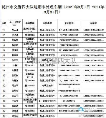 请以下车辆的驾驶人,所有人或管理人在本公告发布之日起三个月内携带身份证,驾驶证,行驶证或车辆合法来源证明到随州市公安局交通警察支队四大队接受处理。