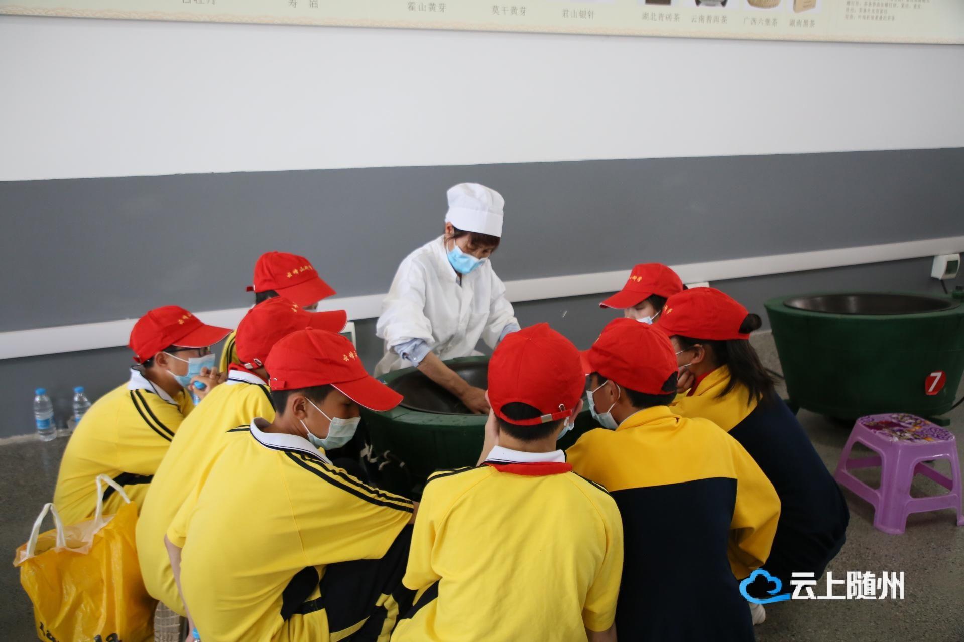在满目绿色、群山环抱、茶垄遍地、清新怡人的随县云峰山万亩茶园,研学旅行团队参观了采茶、制茶、品茶等工艺,并与前来研学的学生一起学习茶桌文化、国学经典、农耕文化等研学课程,加深对茶文化与茶祖炎帝神农文化的理解,收获颇丰。