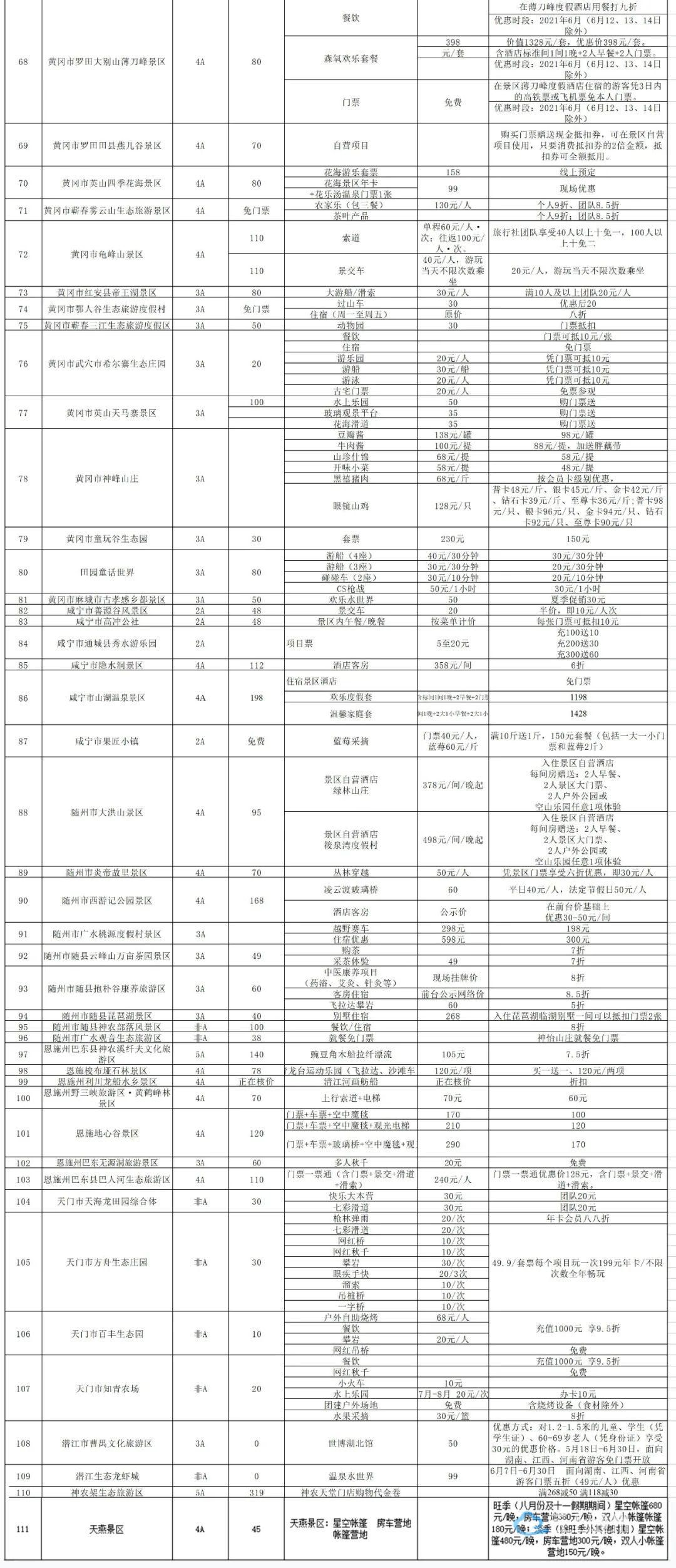 111家景区同时推出景区内二次消费优惠或优惠套餐;