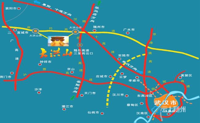 大洪山漂流景区交通便利,汉十、随岳、麻竹三条高速公路,316、107,两条国道,212、333省道都是进入景区的主干道,武汉、襄阳等大中城市2小时内可以到达景区。