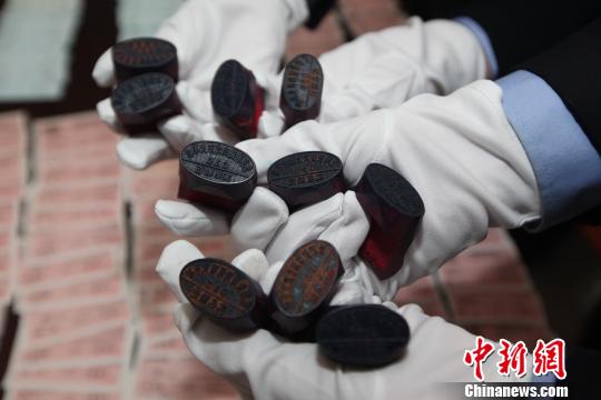 警方展示假火车票使用的印章 胡金力 摄