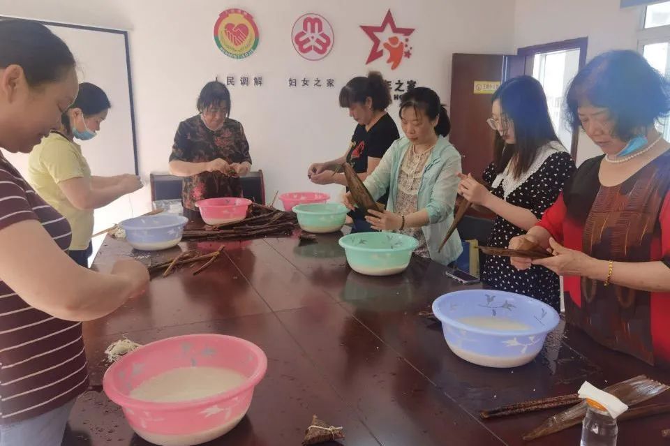 6月11日,西城街道白云湖社区开展“吹响红色集结号 浓情粽意迎端午”主题活动,社区居民们一起包粽子、煮鸭蛋。