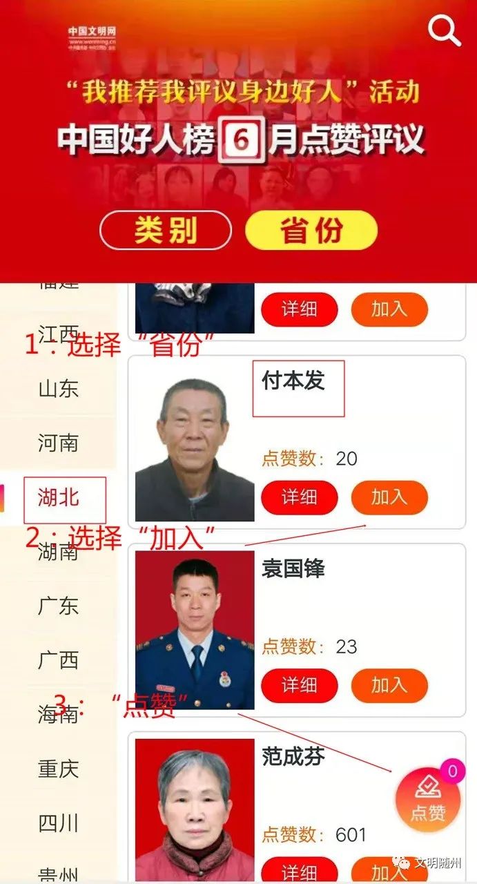 1:点击“省份”选项后,找到被点赞人“付本发”,“加入”到点赞库;
