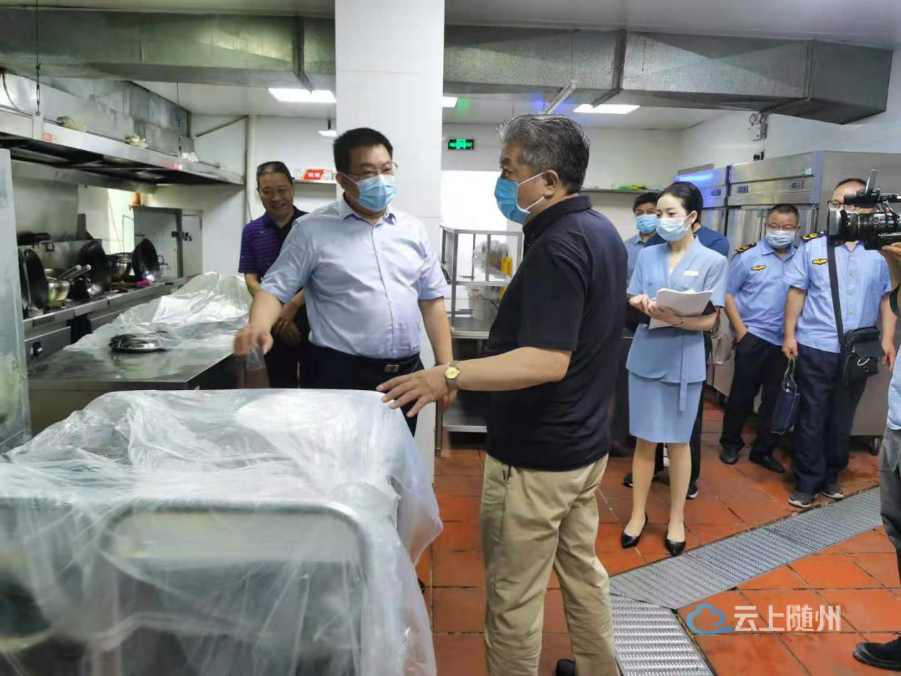 吴超明一行先后到白云山国宾酒店、曾都宾馆、随县神农国际大酒店等寻根节定点接待餐饮单位督查。“厨师和服务人员新冠病毒疫苗都接种了吗?”“酒店食材是哪里供应的?”......每到一处,吴超明都详细询问酒店工作人员疫情防控措施是否落实到位,实地查看厨房操作间环境卫生、储物间食材存放安全等,了解市市场监督管理局派驻各酒店食品安全监督员与酒店对接情况及前期发现食品安全隐患问题整改情况。